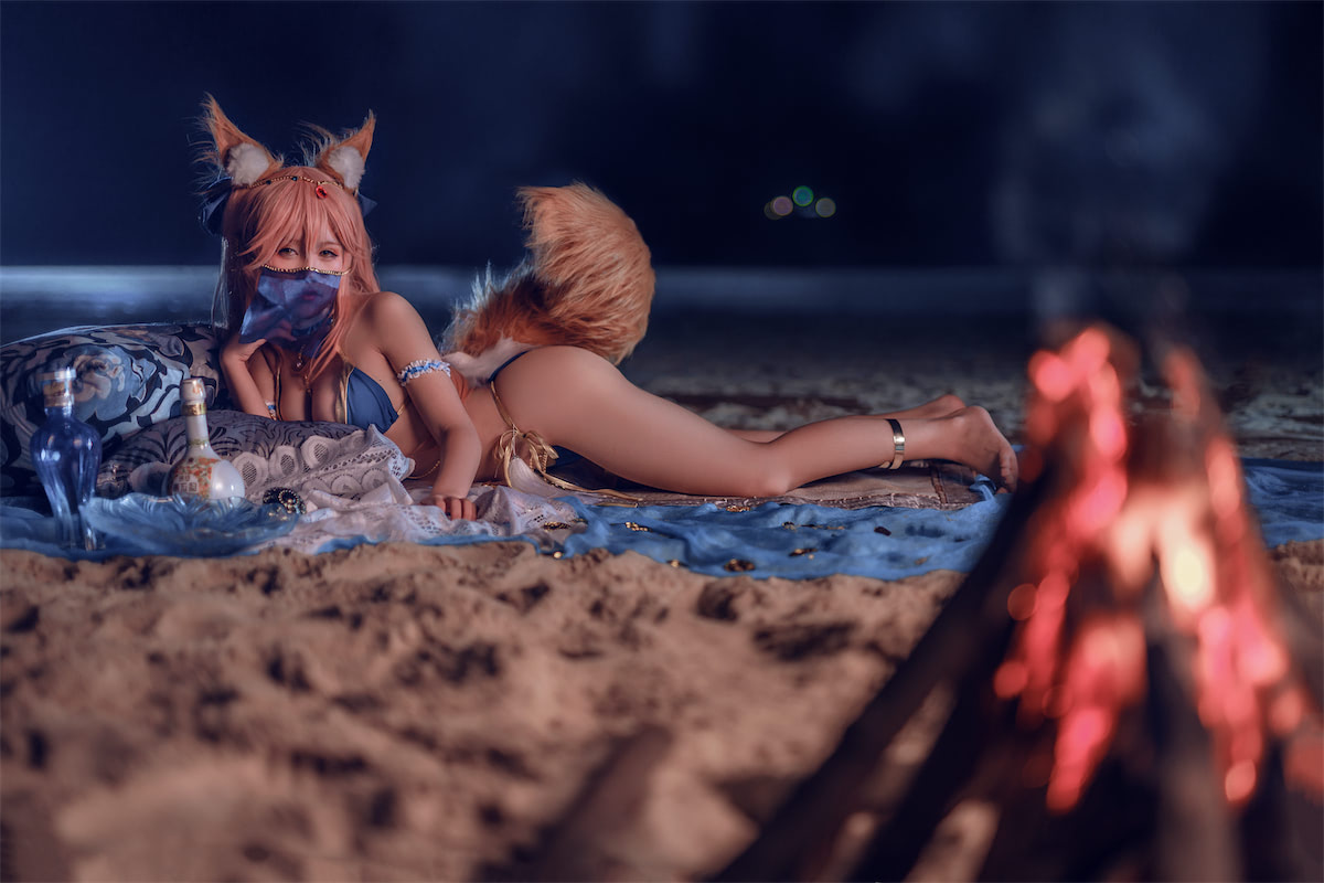 海滩一笑芳香沁的玉藻前舞娘篝火摄影18张。