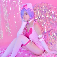 二佐Nisa蕾姆甜心粉色护士装摄影40张。