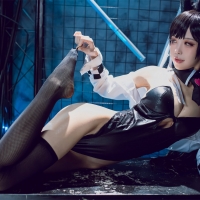 水淼aqua碧蓝航线爱宕犬同人黑胶皮衣机车COS摄影40张。