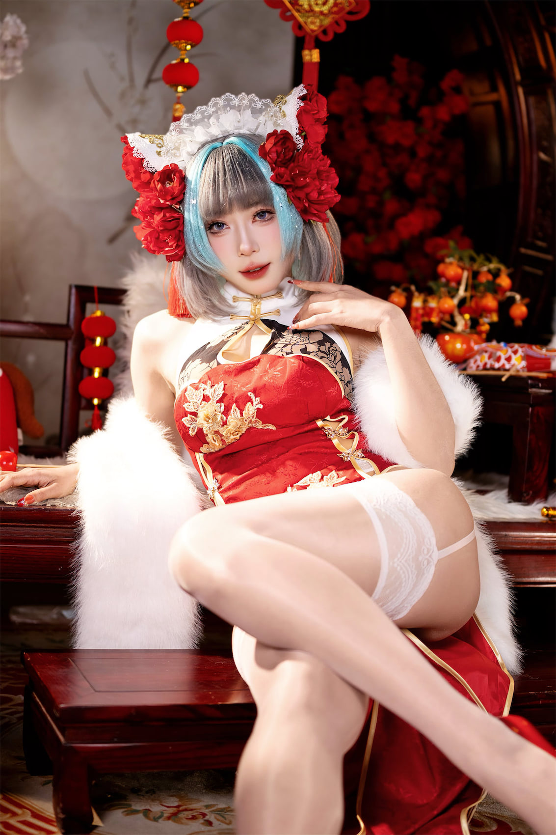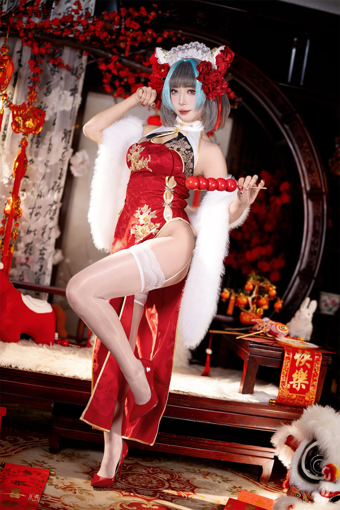 Money冷冷2026年3月1日《柴郡新年旗袍》摄影61张。