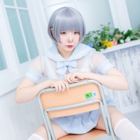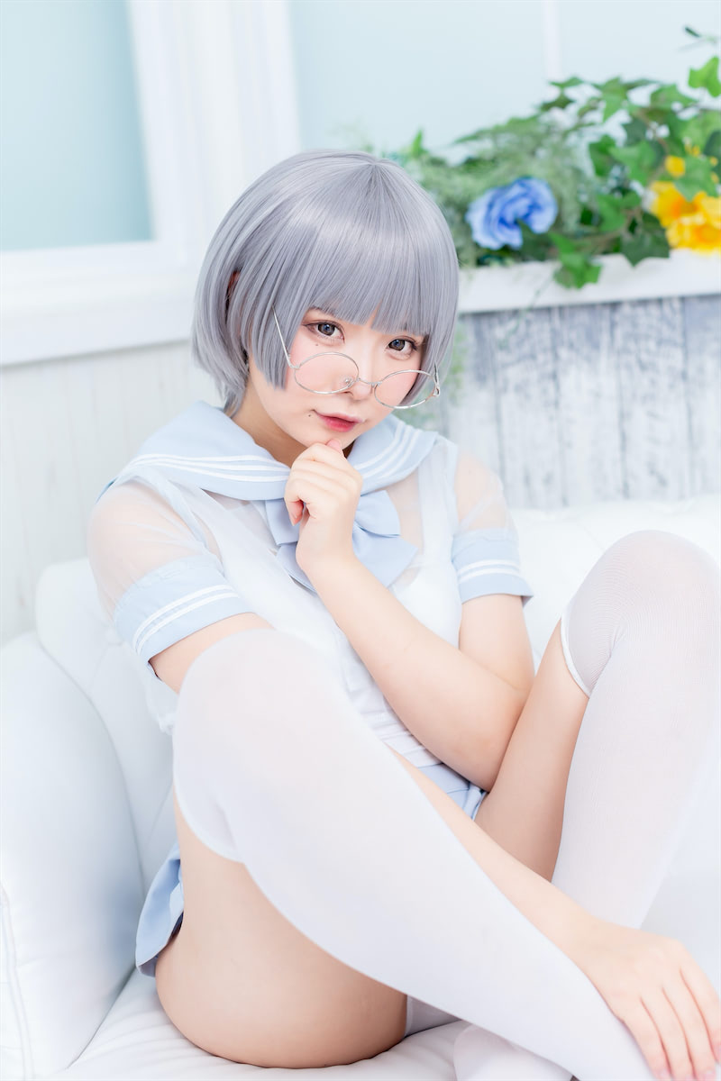 眼镜少女透明淡蓝薄纱JK制服摄影120张。