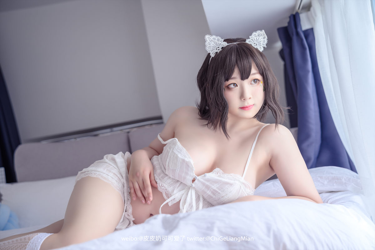 推特ChiGeLiangMian/皮皮奶_Booty可爱风白睡衣摄影50张。