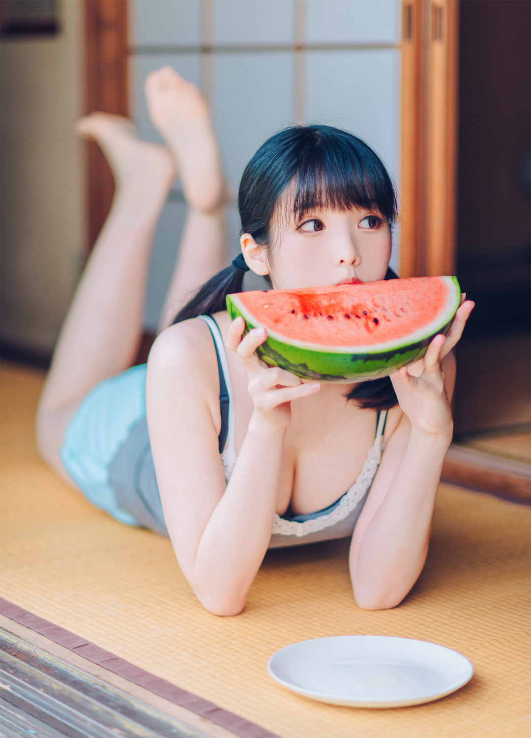 霜月shimo吃西瓜的夏天泳装摄影44张。