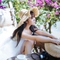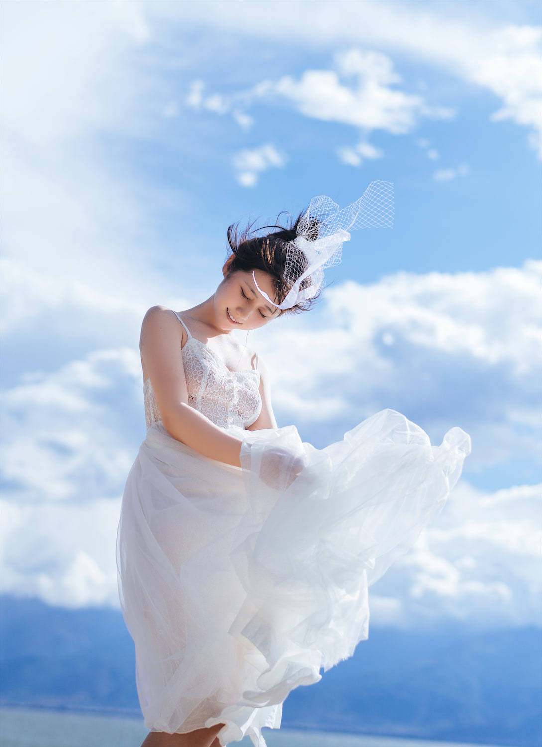 镜酱洱海叶子花蕾丝白裙摄影65张。