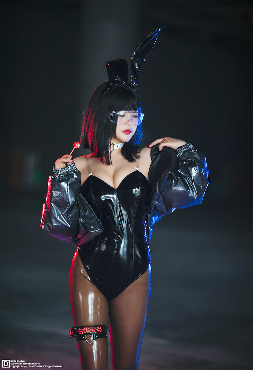 你烨烨/白烨科技感油光胶衣兔女郎摄影11张。