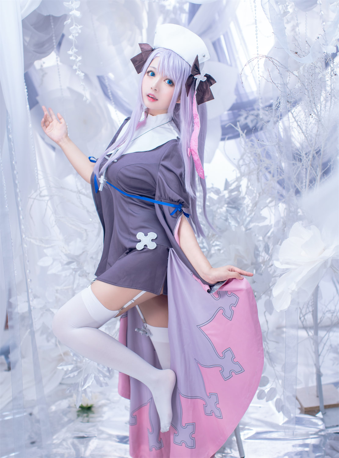 黑猫猫OvO 双马尾白睡裙
